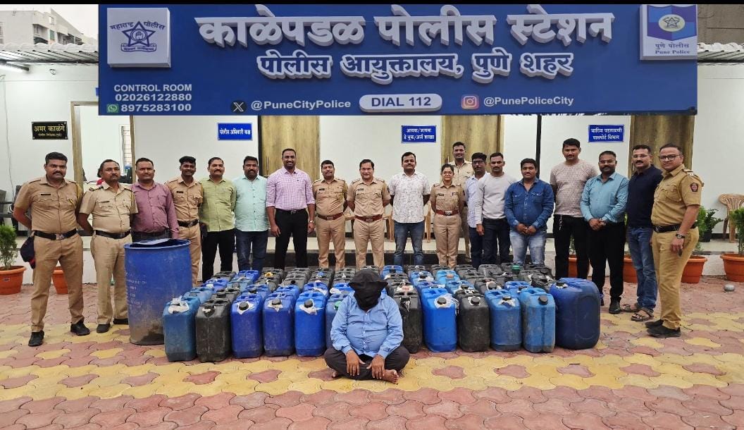वरिष्ठांनी दिलेले आदेशाप्रमाणे दिनांक ११/०६/२०२५ रोजी काळेपडळ कडील तपास पथकाचे सहा पोलीस निरीक्षक अमित शेटे, पोलीस अंमलदार दाऊद सय्यद, पोलीस अंमलदार अतुल पंधरकर, पोलीस अंमलदार खोकले, पोलीस अंमलदार महादेव शिंदे असे पोलीस ठाणे हद्दीत पेट्रोलिंग करीत असताना, गोपनीय बातमीदाराकडून गोपनीय बातमी मिळाली की, कंजारभाट वस्ती, संतोषनगर, हांडेवाडी रोड, सातवनगर, पुणे येथे बांधकाम चालु असलेल्या बिल्डिंग जवळ एक इसम दारुचा साठा करुन त्याचे लोकांना दारुविक्री करीत आहे. त्याप्रमाणे मिळालेल्या बातमीच्या आधारे मा. मानसिंग पाटील, वपोनि साो.काळेपडळ पोलीस ठाणे यांचे मार्गदर्शनाखाली वर नमूद पोलीस स्टाफ यांनी सापळा रचून हातभट्टी दारु अड्डयावर छापा टाकून कारवाई केली. सदर छापा कारवाईमध्ये दारु विक्री करणाऱ्या इसमास ताब्यात घेवून त्यांचे नाव, पत्ता विचारले असता, त्याने त्याचे नाव नवीन दिलीप बिनावत, वय ५४ वर्षे, रा. सातवनगर, हांडेवाडी रोड, हडपसर असे असल्याचे सांगितले. सदर ठिकाणावरुन तयार हातभट्टीच्या दारूने भरलेले एकुण ५३ कॅन व एक बॅरल मध्ये भरुन ठेवलेली २०६५ लिटर तयार हातभट्टीची दारु किंमत ४,१३,०००/- रुपये किंमतीचा मुद्देमाल जप्त करण्यात आला आहे. त्याबाबत काळेपडळ पोलीस ठाणेस गु.र.नं. २२५/२०२५ भा. न्या. सं. कलम १२३ प्रमाणे सह महाराष्ट्र दारुबंदी अधिनियम सन १९४९ कलम ६५ (ई) अन्वये गुन्हा दाखल करण्यात आला आहे. गुन्ह्याचा पुढील तपास सहा पोलीस निरीक्षक, अमित शेटे हे करीत आहेत.