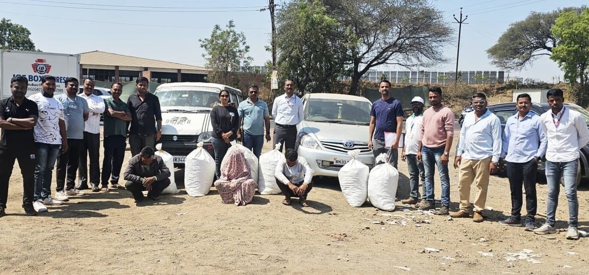 आरोपी नामे १. संजय पांडुरंग मोहिते, वय ३९ वर्षे, रा गोवित्री, पोस्ट करंजगाव, ता मावळ, जि पुणे, २. मन्साराम नुरजी धानका, वय ४० वर्षे, रा हुरेपाणी, पोस्ट सांगवी, ता शिरपुर जि धुळे व एक महिला आरोपी यांचे ताब्यातुन एकुण ६३३१२००/- किंमतीचा एकुण ९६ किलो २०४ ग्रॅम गांजा, ०३ मोबाईल, ०२ चारचाकी व रोख रक्कमजप्त करण्यात आली असुन त्यांचेविरुध्द चाकण पोलीस स्टेशन येथे एन.डी.पी.एस. अॅक्ट कलम ८(क), २०(ब)(त्त्)(क), २९ प्रमाणे गुन्हा दाखल करण्यात आला आहे.