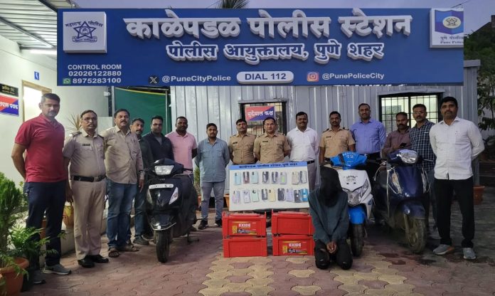 काळेपडळ पो.स्टे. गु. रजि.नं. ३२०/२०२५, बी. एन. एस. कलम ३०३ (२), ३(५) गुन्हा नोंद असून पोलीस हवालदार प्रतिक लाहिगुडे, पोलीस अंमलदार शाहिद शेख व अतुल पंधरकर असे दाखल गुन्ह्याचे घटनास्थळाचे असताना, पोलीस आजुबाजुचे परिसरात दाखल गुन्ह्यातील जप्त सीसीटीव्ही फुटेजमधील आरोपीत यांचा शोध घेत एक इसम अंमलदार शाहिद शेख व अतुल पंधरकर यांना त्यांचे गुप्त बातमिदारामार्फत बातमि मिळाली की, लावण्य हॉटेलच्यापुढे नाल्याजवळ, महंमदवाडी, पुणे येथे त्याच्याकडील दुचाकीवर चोरीची बॅटरी ठेवुन विक्रीसाठी थांबलेला आहे.” अशी खात्रीशिर बातमी मिळताच पंचांसमक्ष त्यांनी सदर इसमास शिताफीने ताब्यात घेवुन दाखल गुन्ह्यातील चोरी झालेली एक एक्साईड कंपनीची बॅटरी व गुन्ह्यात वापरलेली मोपेड गाडीसह ताब्यात घेवुन त्यास त्याचे नाव-पत्ता विचारता त्याने त्याचे नाव – पत्ता जाहिद शरिफ शहा, वय १९ वर्षे, रा-गल्ली नं. ०६, अनिता हाईट, अक्षरधाम सोसायटीजवळ, अबु हानिफा हॉलसमोर, शिवनेरीनगर, कोंढवा खु. पुणे असे असल्याचे सांगुन सदरचा गुन्हा त्याने त्याचे इतर दोन साथीदारांसह केला असल्याचे सांगितले. त्यानंतर त्याने दाखल गुन्ह्यातील उर्वरीत तीन बॅट-या झुडीओ मॉलसमोरील मोकळ्या जागेतुन काढुन दिल्याने त्या जप्त करण्यात आलेल्या आहेत. आरोपीत याचेकडुन अशा एकुण ६०,०००/- रु. किंमतीच्या ०४ एक्साईड कंपनीच्या बॅट-या व व १,००,०००/- रु. किंमतीची गुन्हा करताना वापरलेली डार्क निळ्या रंगाची अॅक्सेस मोपेड एम.एच.१२/ आर.व्ही./५४९१ असा एकुण १,६०,०००/- रु. किंमतीचा मुद्देमाल जप्त करण्यात आला आहे.