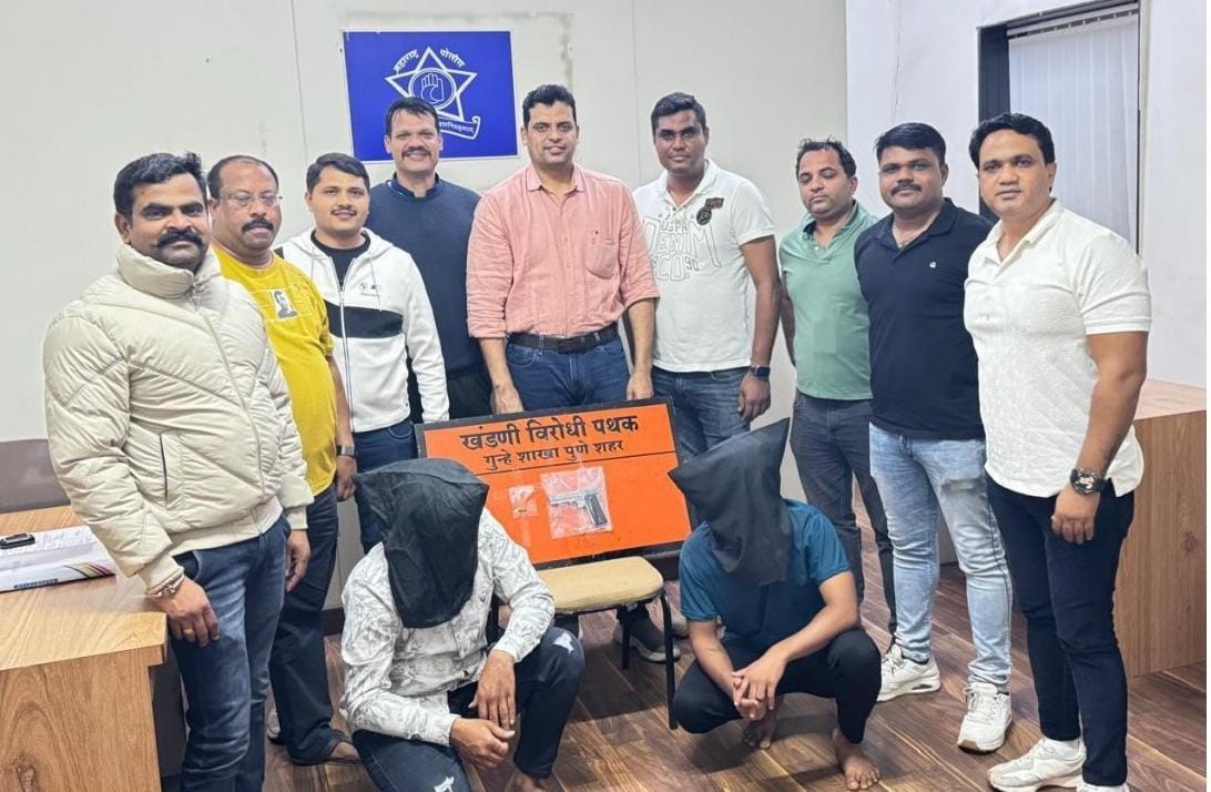 दि.०८/११/२०२५ रोजी खंडणी विरोधी पथक – २, गुन्हे शाखा, पुणे शहर हे पोलीस आयुक्तालयाचे हद्दीमध्ये कॉंबीग ऑपरेशन दरम्यान पेट्रोलींग करीत असताना, पोलीस अंमलदार सुरेद्र जगदाळे व प्रशांत शिंदे यांना गोपनीय बातमी मिळाली की, रेकॉर्डवरील गुन्हेगार नामे. चैतन्य बैरागी हा निलायम ओव्हर ब्रिज जवळ उभा असून त्याचेजवळ पिस्टल आहे. सदर बातमी मिळताच तात्काळ पोलीस पथकाने सदर ठिकाणी जावून पाहणी केली असता रेकॉर्डवरील आरोपी नामे चैतन्य बैरागी व एक इसम मोहम्मद ऑटो गॅरेज, निलायम ब्रिज जवळ फुटपाथवर थांबला असल्याचे दिसून आले असता लागलीच सदर दोन्ही आरोपीस ताब्यात घेतले. त्यांना त्यांचे नाव व पत्ता विचाराला असता, त्यांने त्यांचे नाव १) चैतन्य संतोष बैरागी, वय २३ वर्षे रा. लक्ष्मीनगर, पर्वती, पुण. २) ऋषीकेश फुलचंद रवेलीया, वय २२ वर्षे, रा. लेन नं. ४, साठेवस्ती, लोहगाव, पुणे. असे सांगीतले. तसेच सदर आरोपी क्र.१ ची अंगझडती घेतली असता त्याचेकडे एक गावठी बनावटीचे पिस्टल १ जिवंत काडतूस मिळून आले असता ते जप्त करण्यात आले. सदर बाबत पर्वती पोलीस स्टेशन येथे गु.र.नं. ३४३ / २०२५, आर्म अॅक्ट का. क. ३,२५, भा. न्या. .सं.क. ३(५) व म.पो.का.क. ३७ (१), १३५ अन्वये गुन्हा दाखल करण्यात आला आहे.