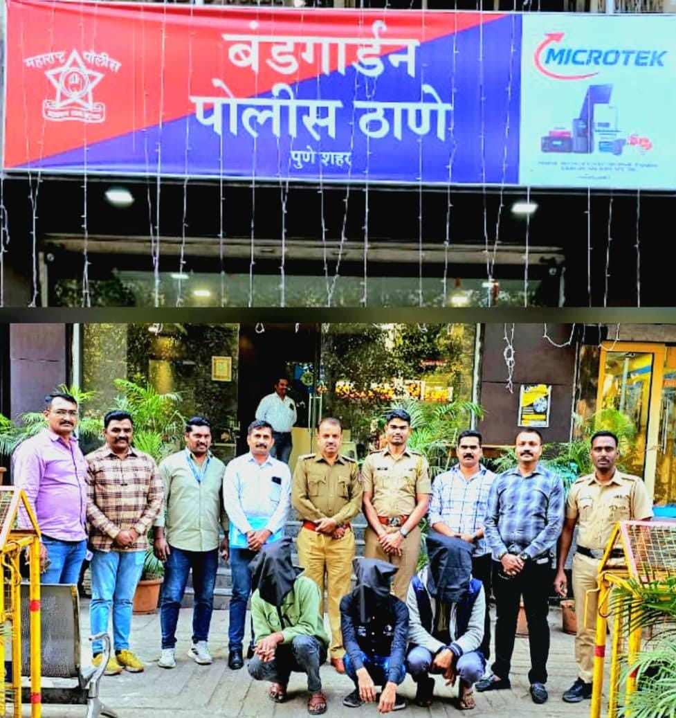 बंडगार्डन पोलीस स्टेशनच्या हद्दीत वरिष्ठ पोलीस निरीक्षक बंडगार्डन पोलीस स्टेशन पुणे शहर यांचे आदेशान्वये तपास पथकातील अधिकारी पोलीस उप-निरीक्षक धिरज गुप्ता व तपास पथकातील अंमलदार असे गुन्हे प्रतिबंधक पेट्रोलिंग करीत असताना पोलीस अंमलदार कृष्णकांत श्रीराम, ज्ञानेश्वर गायकवाड व राजु धुलगुडे यांना त्यांचे गुप्त बातमीदारामार्फत बातमी मिळाली की, जुने रेल्वे सिमेंट गोडाऊन, मालधक्का चौक, पुणे येथे काही इसम दारोडा टाकण्याच्या तयारीत थांबलेले आहेत अशी खात्रीशीर बातमी प्राप्त झाल्याने मिळालेल्या बातमी प्रमाणे तपास पथकाचे अधिकारी पोलीस उप- निरीक्षक धिरज गुप्ता व तपास पथकातील स्टाफ सदर ठिकाणी जावुन इसम नामे १) जानमोहम्मद नसरुद्दीन शेख,वय ३२ वर्षे, रा. पीर वस्ती, गायकवाड फार्म हाऊस समोर, वडकी, पुणे २) सतिष ज्ञानेश्वर शिरोळे, वय ३५ वर्षे, रा. पुणे स्टेशन फिरस्ता, मुळ रा. मु.पो. दहीटणे, तालुका दौंड, जिल्हा पुणे ३) शिव प्रकाश कुमार वय २३ वर्षे, रा. स्वारगेट कॅनाल,पुणे यांना ताब्यात घेवुन त्यांची पंचासमक्ष अंगझडती घेतली असता त्यांचे ताब्यात दरोडयाचे साहित्य व ०६ मोबाईल फोन मिळुन आल्याने ते जप्त करुन त्यांचे विरुध्द बंडगार्डन पो.स्टे. गु.र.नं. ३५२/२०२५ भा.न्या.सं.क. ३१० (४), ३१० (५), आर्म अॅक्ट ४ (२५), म.पो.अधि.क. ३७ (१) (३) प्रमाणे गुन्हा दाखल करण्यात आला. नमुद आरोपीतांना दि.१८/११/२०२५ रोजी अटक करण्यात आलेली आहे.