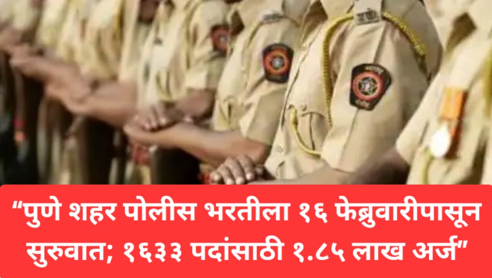 “पुणे शहर पोलीस भरतीला १६ फेब्रुवारीपासून सुरुवात; १६३३ पदांसाठी १.८५ लाख अर्ज.