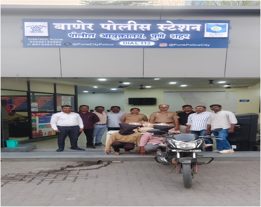 दि.१६/०३/२०२६ रोजी पोलीस निरीक्षक (गुन्हे) श्रीमती अलका सरग यांना गोपनीय बातमीदारांमार्फत बातमी मिळाली की, ज्युपीटर हॉस्पिटल जवळ, बाणेर पुणे या ठिकाणी अंमली पदार्थ गांजा विक्री करण्यास दोन इसम येणार आहेत. सदरबाबत वरिष्ठ पोलीस निरीक्षक चंद्रशेखर सावंत, बाणेर पोलीस स्टेशन यांना कळविले असता त्यांनी सदर बातमीची खात्री करुन कारवाई करणेबाबत सांगितल्याने सदर ठिकाणी पोनि (गुन्हे) श्रीमती अलका सरग, सहा पोलीस निरीक्षक कैलास डाबेराव, सहा पोलीस निरीक्षक गणेश रायकर व तपास पथक अंमलदारांसह रवाना झाले. तपास पथक पीएमसी जलतरण तलावाचे लगत, ज्युपीटर हॉस्पिटल जवळ, बाणेर पुणे या ठिकाणी सापळा रचुन थांबले असताना रात्रौ ०१ / ३० वा. चे सुमा दोन इसम होंडा शाईन कंपनीची काळ्या रंगाचे मोटारसायकलवर सदर ठिकाणी आले. तपास पथकाचे अधिकारी व अंमलदार हे त्यांच्या जवळ जात असताना सदर दोन इसम हे त्यांना बघुन पळुन जात असताना तपास पथकाचे अधिकारी व अंमलदार यांनी नमुद इसमांना शिताफीने ताब्यात घेवुन त्यांना त्यांचे नाव व पत्ता विचारला असता त्यांनी त्यांचे नाव १) अभिषेक भिका बोरसे, वय-२४ वर्षे, रा. चौधरी यांचे घरामध्ये, ३ रा मजला, साईदत्त रेसिडेन्सी, रानमळा हॉटेल समोर चाफेकर चौक, चिंचवड, पुणे २) अक्षय भिका बोरसे, वय- २९ वर्षे, रा. सदर असे सांगितले. नमुद इसमास त्यांचे जवळ असलेल्या लाल रंगाचे बॅगबाबत विचारले असता ते उडवाउडवीची उत्तरे देत असल्याने सदरची बॅग चेक केली असता त्यामध्ये एकुण ०३.०३४ किलोग्रॅम गांजा हा अंमली पदार्थ मिळुन आल्याने नमुद इसमांविरुध्द बाणेर पोलीस स्टेशन गु.र.नं.६८/२०२६ एन.डी.पी.एस. अॅक्ट कलम ८ (क), २० (ब)(ब), २२ (ब) प्रमाणे गुन्हा दाखल करुन त्यांचे घरझडती मध्ये एकुण १३.०८८ किलोग्रॅम निव्वळ गांजा, इलेक्ट्रॉनिक काटा, चिकटपटी व विमल कंपनीच्या दोन मोठ्या बॅग असा एकुण ६,५५,५१०/- रु की. चा मुद्देमाल जप्त करण्यात आला आहे. नमुद आरोपीतांकडुन एकुण १६.१२२ किलोग्रॅम गांजा, मोटारसायकल असा एकुण ८,७६,४९०/- रु की. चा मुद्देमाल माल जप्त करण्यात आला आहे. नमुद गुन्ह्याचा अधिक तपास सहा पोलीस निरीक्षक गणेश रायकर हे करीत आहेत.