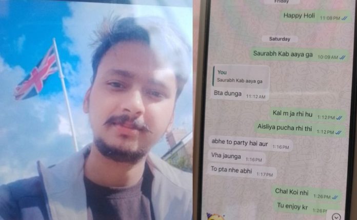 एनडीटीव्हीने सौरभच्या क्रमांकावरून प्राप्त झालेल्या व्हॉट्सअ‍ॅप मेसेजेस चिन्कीवर प्रवेश केला आहे. March मार्च रोजी, एक संदेश विचारला की चिंकी होळीसाठी मेरुटमध्ये असेल का? जेव्हा तिने हो सांगितले तेव्हा उत्तर असे होते की तो बाहेर होता आणि उत्सवानंतरच परत येईल. दोन दिवसांनंतर, 8 मार्च रोजी तिने आपल्या मुलीला आपल्याबरोबर घेत नाही का असे विचारले. उत्तर असे होते की तो जेथे गेला होता ते तापमान -10 डिग्री सेल्सियस होते आणि ती आजारी पडली असती. होळीच्या शुभेच्छा देखील देवाणघेवाण झाली. होळी, १ March मार्चच्या दुसर्‍या दिवशी, चिंकीने विचारले की सौरभ परत जात असताना परत येईल. उत्तर असे होते की त्याने पार्टीची योजना आखली होती आणि तो मेरठमध्ये परत कधी येईल याची खात्री नव्हती. चिन्कीने तिच्या भावाला स्वत: चा आनंद घेण्यास सांगितले. त्या बदल्यात तिला विचारले गेले की घरी होळी कशी आहे. 16 मार्च रोजी, सौरभ यांच्याशी बोलण्याची आशा बाळगून 16 मार्च रोजी चिंकीने व्हॉट्सअ‍ॅपवर कॉल केला. कॉल अनुत्तरीत गेला. दुसर्‍या दिवशी, चार कॉल अनुत्तरीत गेले. कुटुंब संशयास्पद वाढले आणि पोलिसांकडे गेले.
