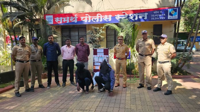 मा. वरिष्ठांच्या आदेशाने दाखल गुन्हयातील अज्ञात चोरटयाचा समर्थ पोलीस स्टेशन कडील तपासपथक तसेच गुन्हे शाखा समांतर तपास करीत असताना घटनास्थळावरील उपलब्ध सीसीटीव्ही फुटेज तपासुन तसेच गोपनिय बातमीदार यांचेकडुन माहीती प्राप्त करुन आरोपी नामे सुनिल मल्हारी तलवारे वय ३८ वर्षे रा. केएसबीचौक अजंठानगर मजिदजवळ आकुर्डी पुणे व विधीसंघर्षीत बालक यास ताब्यात घेवुन त्यांचेकडे दाखल गुन्हयाचे अनुषंगाने तपास केला असता वरीलप्रमाणे गुन्हा केला असल्याचे कबुल करुन दाखल गुन्हयातील चोरी केलेले सोन्याचे दागीणे त्यांचा साथीदार नामे शिवानंद दशरथ मोची याचेकडे विक्री करीता दिले असल्याची माहीती दिले वरुन इसम नामे शिवानंद दशरथ मोची याचा पिंपरी चिंचवड परीसरात शोध घेवुन त्यास ताब्यात घेवुन आरोपी नामे १) सुनिल मल्हारी तलवारे वय ३८ वर्षे रा. केएसबी चौक अजंठानगर मजिदजवळ आकुर्डी पुणे व २) शिवानंद दशरथ मोची उर्फ मोची मामा वय ४० वर्षे, रा. भिमशक्तीनगर, मोरेवस्ती, चिखली, ता. हवेली, जि.पुणे यांना दाखल गुन्हयात अटक करुन त्यांचेकडे सखोल तपास करुन आरोपी व विधीसंघर्षीत बालक यांचेकडुन दाखल गुन्हयातील चोरी केलेले सोन्याचे व चांदीचे दागीणे तसेच १०,०००/- रुपये रोख रक्कम असा एकुण ८,११,०००/- रु. किं.चा मुद्देमाल जप्त करण्यात आला आहे. सदर आरोपीतांकडे केले तपासामध्ये त्यांनी खराडी पोलीस स्टेशन, चंदनगर पोलीस स्टेशन व महाड शहर पोलीस स्टेशन जि.रायगड हद्दीत देखील घरफोडीचे गुन्हे केले असल्याचे तपासात निष्पन्न झाले आहे.