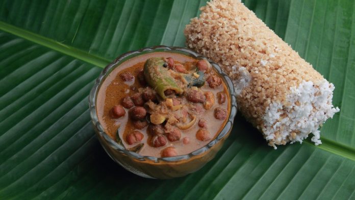 केरळमधील एक क्लासिक कॉम्बो म्हणजे पुट्टू आणि कडाला करी. पुट्टू हे तांदळाचे पीठ आणि नारळासह वाफवलेले केक सारखे उपचार आहे. यात थोडीशी खडबडीत आणि चवीची पोत आहे, जी करीला चांगले पूरक आहे. हे बर्‍याचदा दंडगोलाकार साच्यात वाफवलेले असते. घरी बनवण्याचा प्रयत्न करू इच्छिता? येथे एक कृती आहे.
